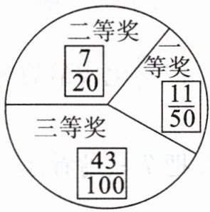 1. 某校举办诗歌朗诵比赛,获得一、二、三等奖的人数占获奖总人数的情况如下图所示,将图中的分数$\frac {7}{20},\frac {43}{100},\frac {11}{50}$按从小到大的顺序排列起来。