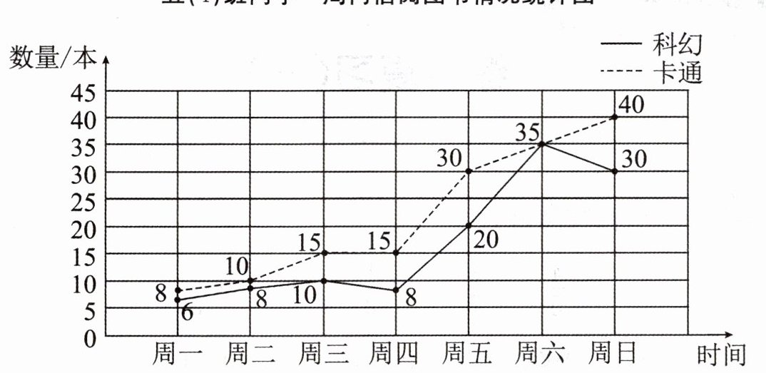 1. 根据统计图,你知道一周内哪天五(4)班同学借阅图书的本数最多吗?