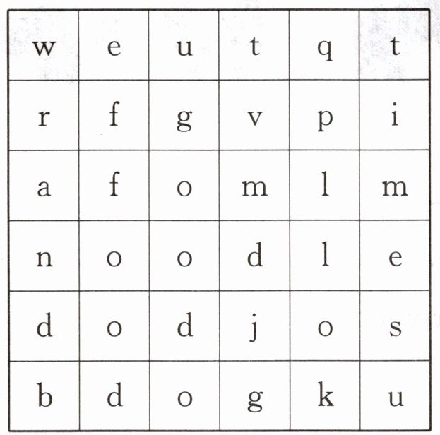 一、小小侦探家(根据方框中的汉语在表格中圈出对应单词)
