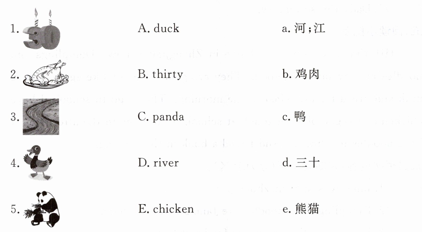 1. day 2. early 3. bear 4. room 5. cow