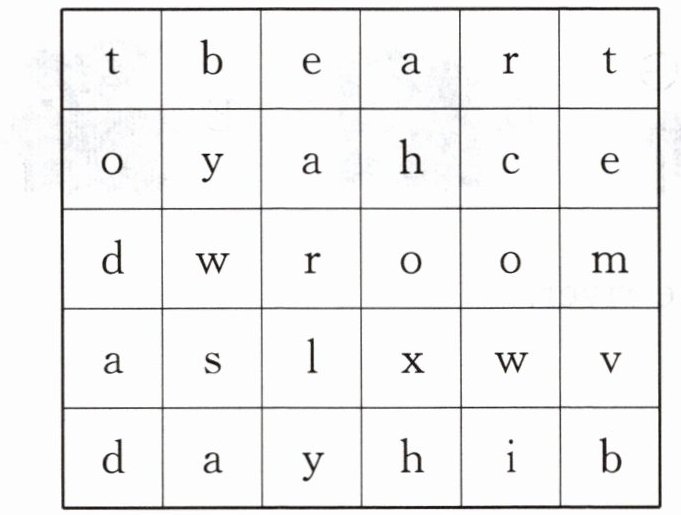 一、小小侦探家(根据方框中的汉语在表格中圈出对应单词)