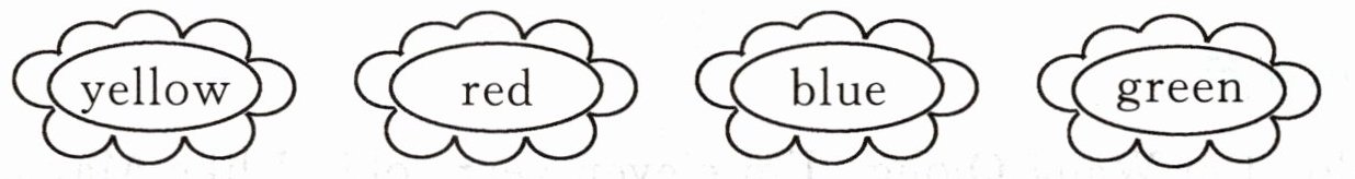 1. green 2. red 3. yellow 4. blue