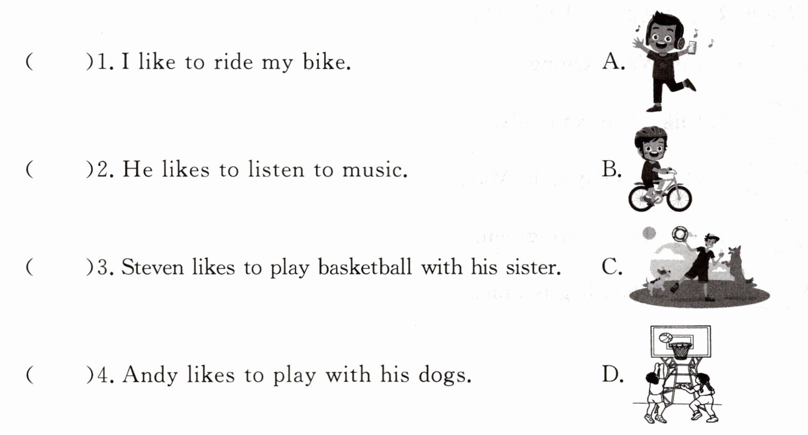 三、画里有“话”(为下列句子选择正确的图片)