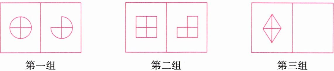 2. 仔细观察下列图形,猜一猜第三组的空白处应填什么图形。