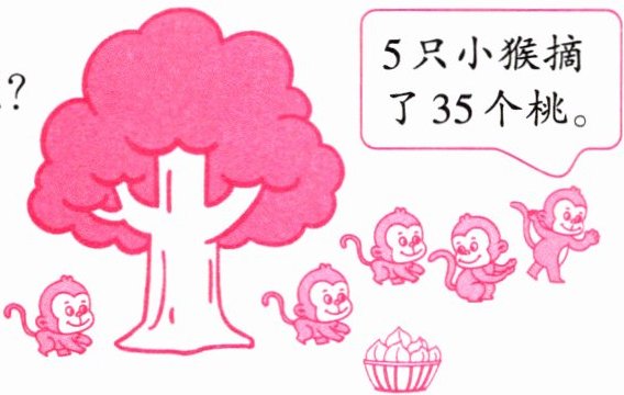 1. 先算出每只小猴摘桃的个数:$35÷5 = 7$(个),再算$8$只小猴摘桃的个数:$7×8 = 56$(个)。
