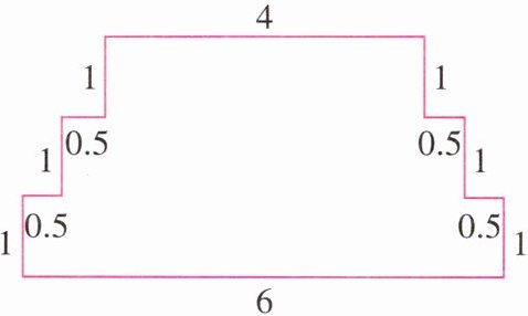 【解析】:先计算这块地的总面积,通过分割图形计算。把这块地看作一个大长方形减去几个小长方形。大长方形长$6$,宽$1 + 1+1=3$,面积为$6×3 = 18$,减去的小长方形部分:两个长$1$宽$0.5$的小长方形面积为$2×(1×0.5)=1$,两个长$(1 + 1)$宽$0.5$的小长方形面积为$2×(2×0.5)=2$,总面积是$18-1 - 2=15$。平均分给$5$户人家,每户面积是$15÷5 = 3$。