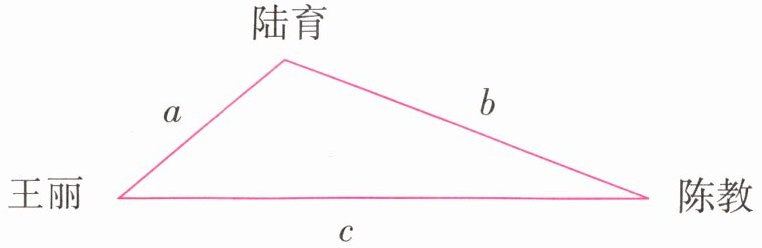 1. 下面是王丽、陆育和陈教三家之间的距离图。a、b、c代表的是三家之间的距离,下列选项正确的是( )。