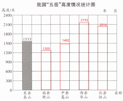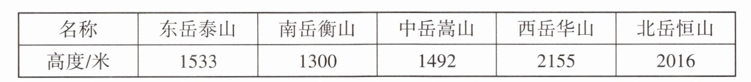 今天李林在图书馆看到了我国“五岳”的高度(数据取整数值),具体如下表: