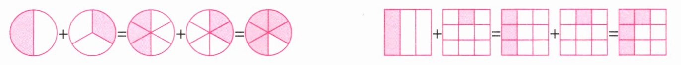 $\frac {1}{2}+\frac {1}{3}=()+()=()$