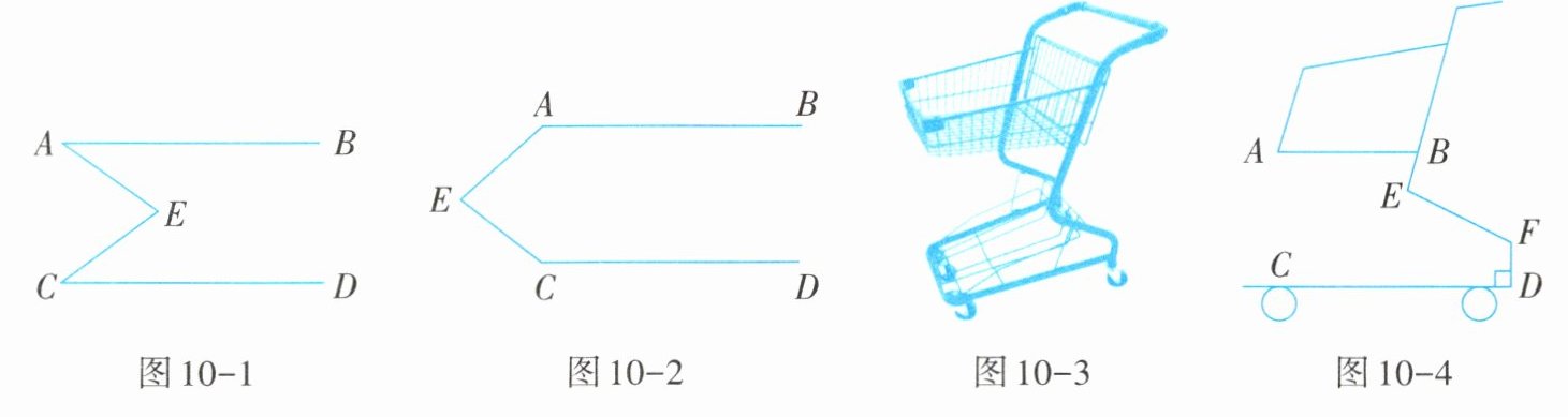 数学活动课上,王老师给出如下问题:如图10-1,$AB// CD$,点E在AB,CD之间,且点E在点A右侧,求证:$∠AEC=∠BAE+∠DCE$(提示:过点E作$EF// AB$);