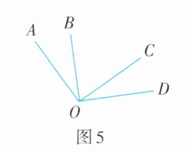 3. 如图5,$OA⊥OC,OB⊥OD,∠BOC = 62°$,则$∠AOD =$____.
