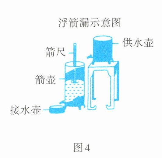 《九章算术》中记载,浮箭漏(图4)出现于汉武帝时期,它由供水壶和箭壶组成,箭壶内装有箭尺,水匀速地从供水壶流到箭壶,箭壶中的水位逐渐上升,箭尺匀速上浮,可通过读取箭尺读数计算时间。某学校一小组仿制了一套浮箭漏,并从函数角度进行了如下实验探究: