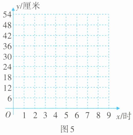 【探索发现】①建立平面直角坐标系,如图5,横轴表示供水时间$x$,纵轴表示箭尺读数$y$,描出以表格中数据为坐标的各点;