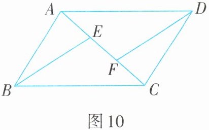 $\triangle ABE\cong\triangle CDF(AAS)$,所以$BE = DF$ 。