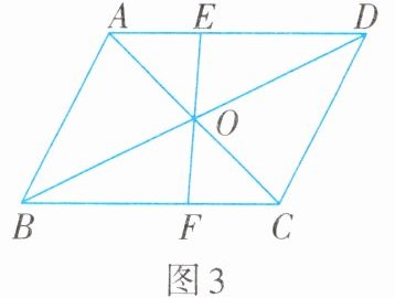 5. 如图3,EF过$ \square ABCD $对角线的交点O,交AD于点E,交BC于点F,若$ \square ABCD $的周长为18,$ OE = 1.5 $,则四边形EFCD的周长为()。