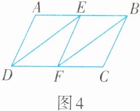 3. 如图4,在$ \square ABCD $中,E,F分别为AB,DC的中点,连接DE,EF,FB,则图中共有____个平行四边形。