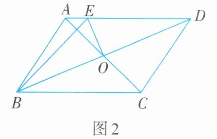 4. 如图2,$ \square ABCD $的周长为16 cm,AC,BD相交于点O,$ EO \perp BD $交AD于点E,则$ \triangle ABE $的周长为()。