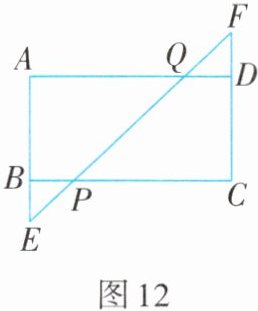 2. 如图12,在矩形ABCD中,延长AB至点E,延长CD至点F,BE=DF,连接EF,与BC,AD分别相交于P,Q两点。