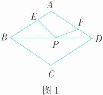 2. 如图1,在周长为12的菱形ABCD中,AE=1,AF=2,若点P为对角线BD上一动点,则EP+FP的最小值为( ).