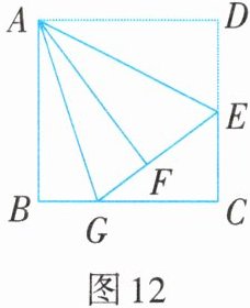 3. 如图12,在边长为6的正方形ABCD中,E是边CD的中点,将$△ADE$沿AE对折至$△AFE$,延长EF交BC于点G,连接AG.