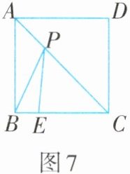 3. 如图7,正方形ABCD的边长为4,E是边BC上的一点,且BE=1,P是对角线AC上的一动点,连接PB,PE,当点P在AC上运动时,△PBE周长的最小值是______.