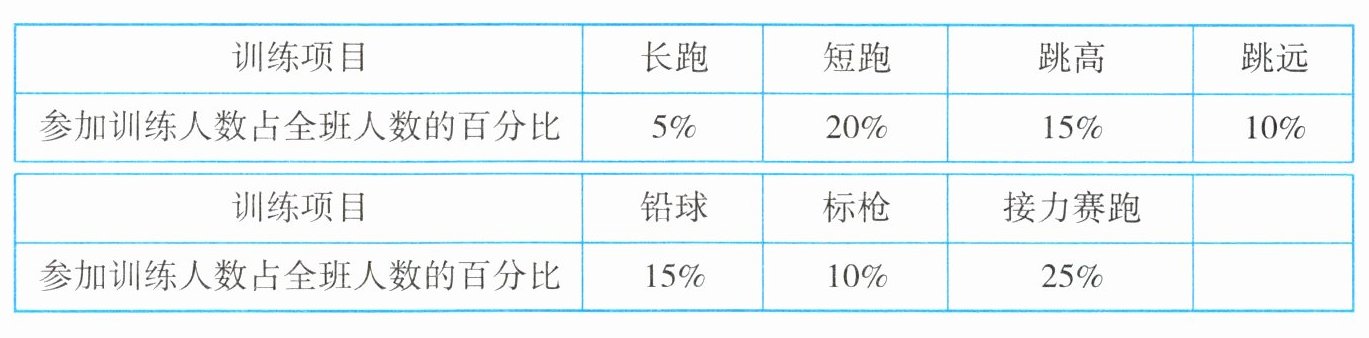 2. 为了在校运动会中取得好成绩,八(1)班全员进行培训,每名同学只参加一个项目的训练. 下表是该班同学参加