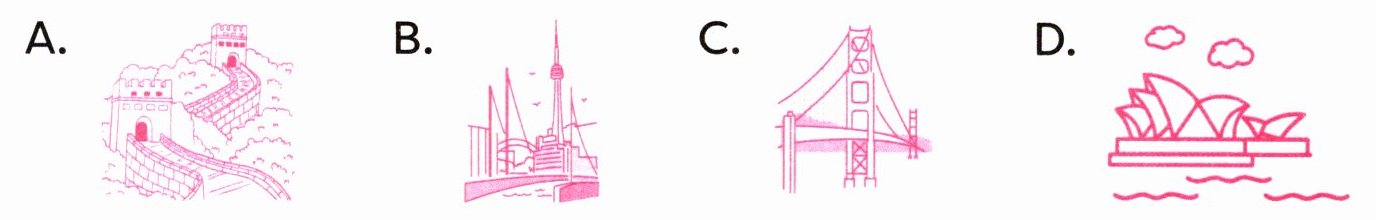 Ⅵ. 将下列国宝和地标建筑进行配对,并将序号填写在括号内。