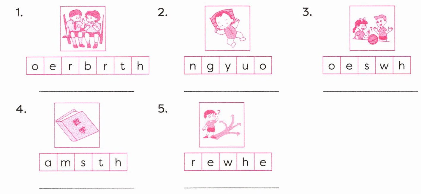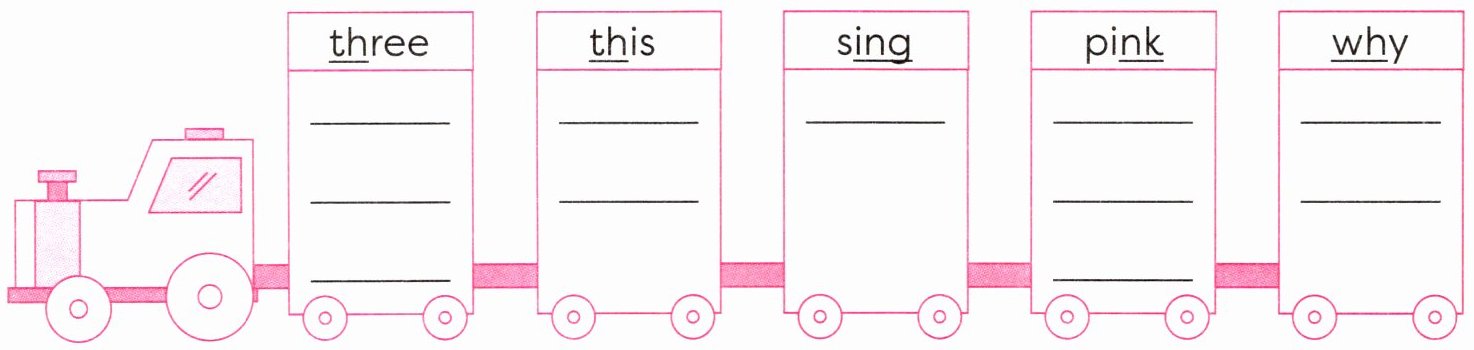 Ⅱ. 先观察图片,在横线上写出正确的单词;然后画出单词中的 th、ng、wh 字母组合,并记住它们的发音规律。