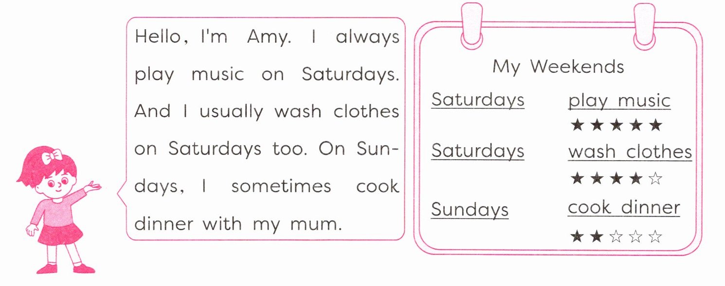 Ⅷ. 看一看Amy的周末安排,再试着写一写自己的周末安排。