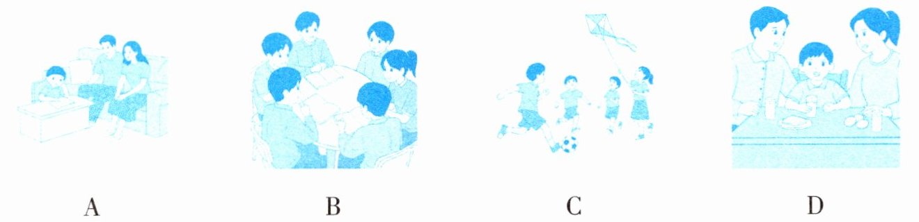 Ⅰ. 读一读有关幸福的诗歌,为每一节诗选择合适的图片。
