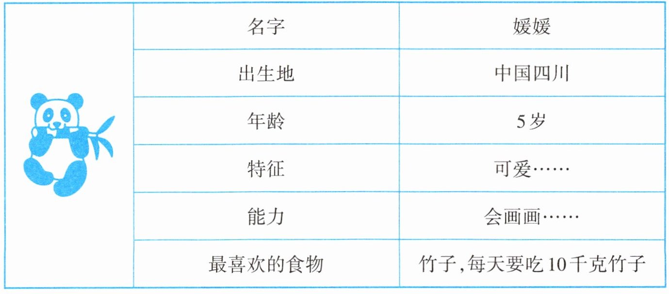 今天你在动物园里见到了自己最喜欢的动物 大熊猫。请你根据下面表格中