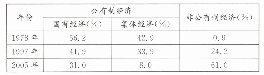 材料一中的变化:所有制结构发生了变化(或公有制经济比重下降,非公有制经济比重上升)。