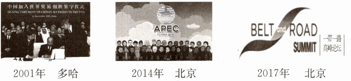(3)中国积极参与地区和全球性的经济组织;中国积极参与国际合作、国际交流;中国综合国力显著增强,国际地位稳步提高;中国积极融入经济全球化的潮流。(答出其中两条即可)独立自主的和平外交政策。