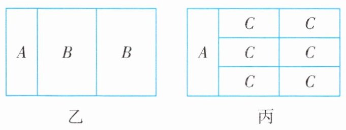 乙切 6 张(出 12B),丙切 6÷6=1 张(出 6C),A 需 12 张,5x+6+1=12,x=1。总板材 m=1+6+1=8。
