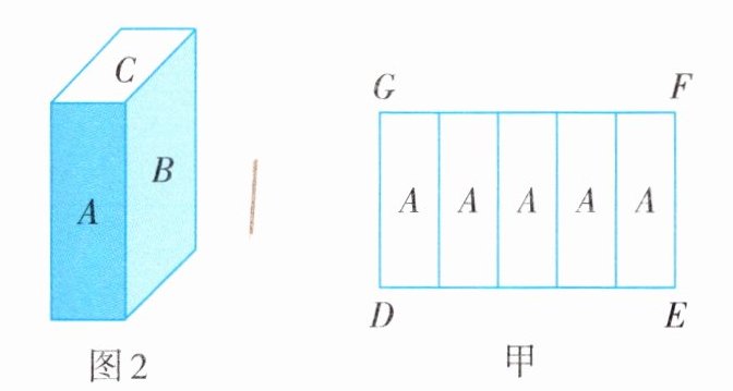 如图2,是一个无盖的木箱,该木箱由A,B,C三种型号的木板制作而成,而三种型号的木板是由一个大长方形DEFG板材按如下甲、乙、丙三种不同切割方式进行无废料切割得到.已知$DE = 50cm$.