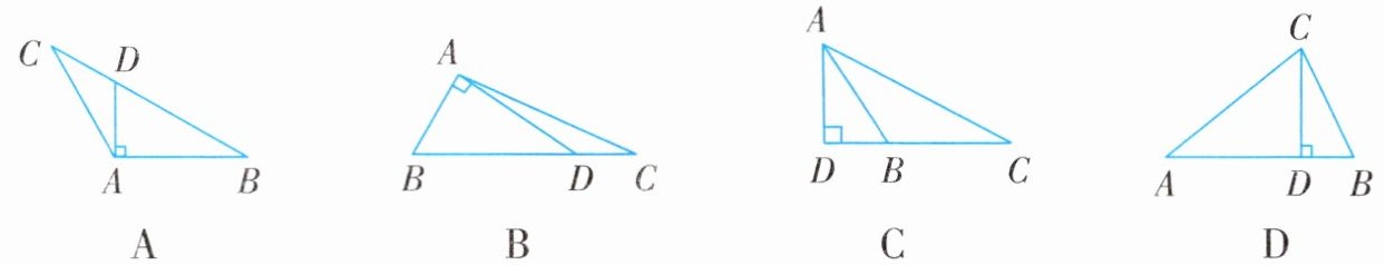 1. 下列图形中,线段AD是$\triangle ABC$的高的是( ).
