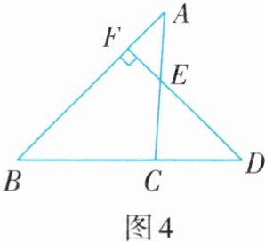 1. 如图4,$DF⊥AB,∠A=40^{\circ },∠D=43^{\circ }$,求$∠ACD$的度数.