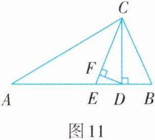 4. 如图11,在$\triangle ABC$中,$\angle A=40^{\circ }$,$\angle B=72^{\circ }$,$CE$平分$\angle ACB$,$CD\perp AB$于点$D$,$DF\perp CE$交$CE$于点$F$,求$\angle CDF$的度数.