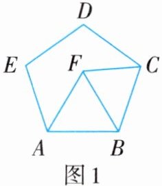 5. 如图1,点F在正五边形ABCDE的内部,$\triangle ABF$为等边三角形,则$∠AFC$等于( )。