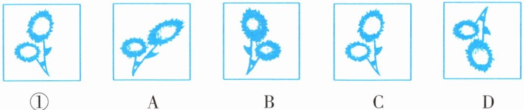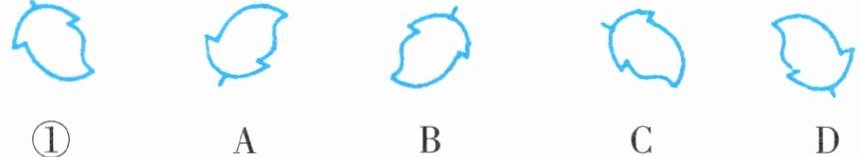 2. 在下列五幅图案中,A,B,C,D中的()图案可以通过旋转图案①得到。