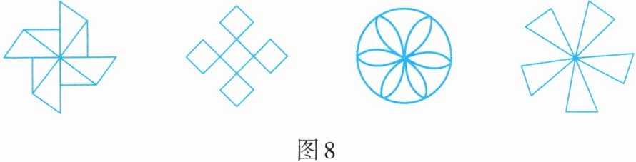 6. 如图8所示的图案中,既是中心对称图形又是轴对称图形的有____个.