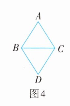 3. 如图4,等边三角形ABC旋转后能与等边三角形DBC重合,那么在图形所在的平面上可以作为旋转中心的点共有______个。