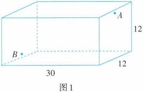 在一个如图1所示(单位:英尺,1英尺=0.3048米)的长方体房间里,一只蜘蛛在一面墙的中间离天花板1英尺的A处,苍蝇则在对面墙的中间离地板1英尺的B处.苍蝇非常害怕,以至于无法动弹.