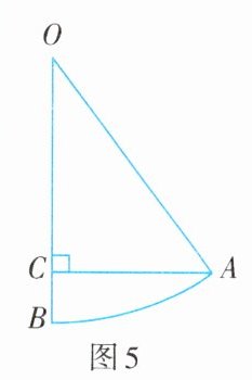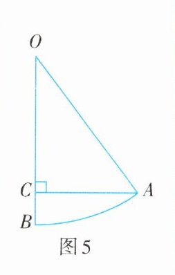 4. 明朝数学家程大位曾作词《西江月·秋千索长》。该诗词翻译后的呈现如示意图5,OA,OB表示秋千的绳索,$ AC⊥OB $,$ BC=1 $,$ AC=2 $,则该秋千的索长$ OA= $________。