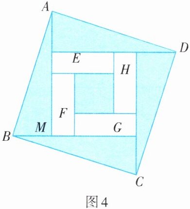 10. 四个全等的直角三角形按图4所示方式围成正方形ABCD,过各较长直角边的中点作垂线,围成面积为S的小正方形EFGH,已知AM为$ Rt△ABM $较长的直角边,$ AM=2\sqrt{2}EF $,则正方形ABCD的面积为( )。