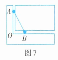 6. 图7中的两个滑块A,B由一根杆连接,分别可以在垂直和水平的滑道上滑动。开始时,滑块A距O点24cm,滑块B距O点10cm。则当滑块A向下滑到O点时,滑块B滑动了________cm。