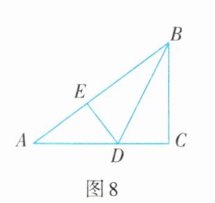 7. 如图8,在$ Rt△ABC $中,$ ∠C=90^{\circ} $,$ BC=6cm $,$ AC=8cm $。将$ △BCD $沿BD折叠,使点C落在边AB的点E处,则$ △ADE $的面积是________$ cm^{2} $。