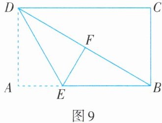 3. 如图9,在矩形纸片$ABCD$中,$AB = 8$,$BC = 6$,点$E$在边$AB$上,将$△DAE$沿$DE$折叠,使点$A$落在对角线$BD$上的点$F$处,求$AE$的长。