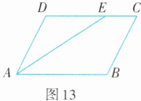 1. 如图13,在□ABCD中,∠BAD的平分线AE交DC于点E,若∠DAE=25°,求∠C,∠B的度数。