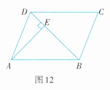8. 如图12,在□ABCD中,DB=DC,AE⊥BD,垂足为点E,若∠EAB=46°,则∠C=__________。